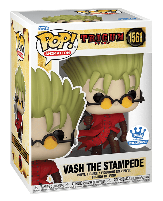 El pistolero que viaja por el espacio, Vash the Stampede, tiene la misión de reconstruir los fragmentos de su memoria. ¡Ayuda a este exclusivo Pop! Vash con Punisher Cross logra su objetivo mientras evade a los cazarrecompensas que le pisan los talones ofreciéndole un puerto seguro en tu colección de Trigun. La figura de vinilo mide aproximadamente 4.9 pulgadas de alto.